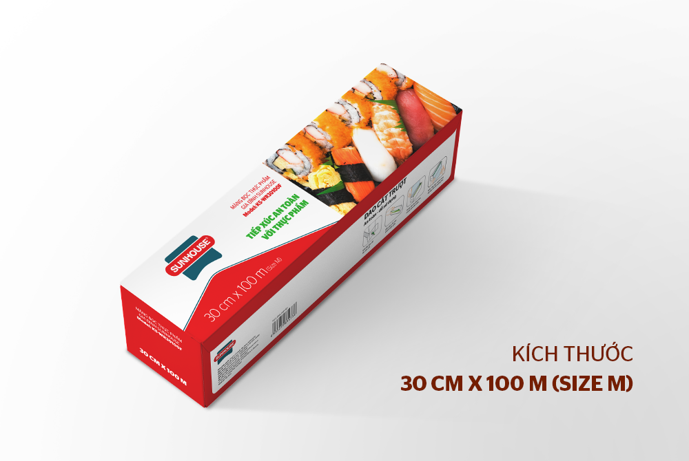 Màng bọc thực phẩm gia đình Sunhouse phù hợp dùng cho cả bảo quản thực phẩm chưa qua chế biến và thức ăn đã qua sơ chế.