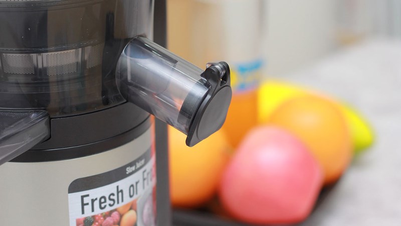 Ống dẫn nước ép có nắp đậy đảm bảo vệ sinh, ngăn nước ép bị nhỏ giọt sau khi ép xong.
