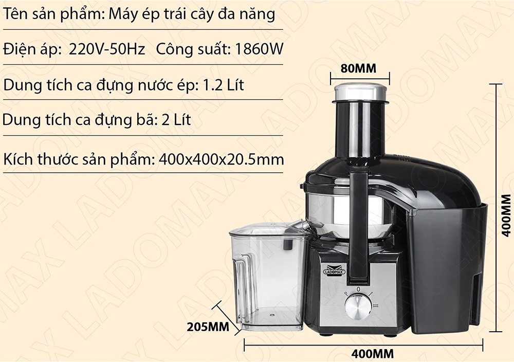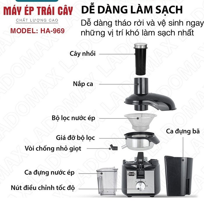 Thông số kỹ thuật Máy ép trái cây Ladomax HA-969
