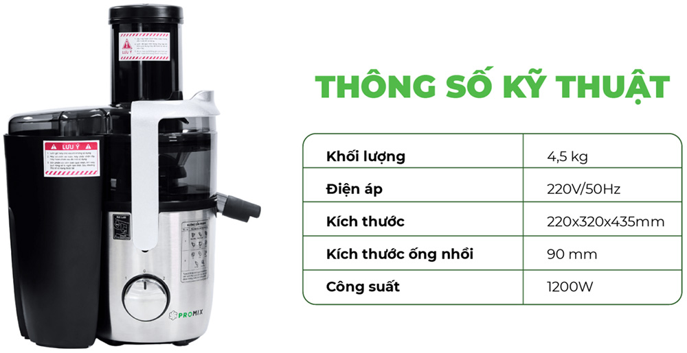 Thông số kỹ thuật Máy ép trái cây Promix PFJ-12