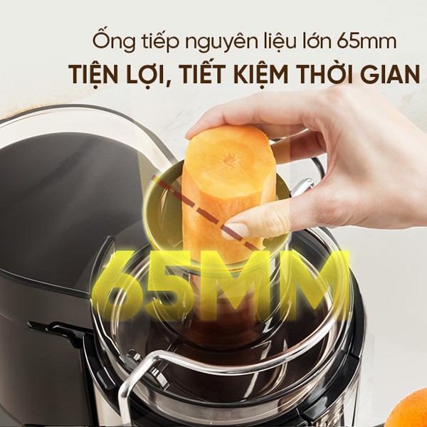 Với thiết kế ống tiếp nguyên liệu rộng 65mm, máy ép SHD5522 có thể ép trái cây nguyên quả hoặc miếng lớn vào mà không cần cắt nhỏ. Nhờ đó, tiết kiệm thời gian và quá trình sơ chế trở nên nhanh gọn hơn, giữ trọn dưỡng chất và tiết kiệm đáng kể thời gian chuẩn bị.