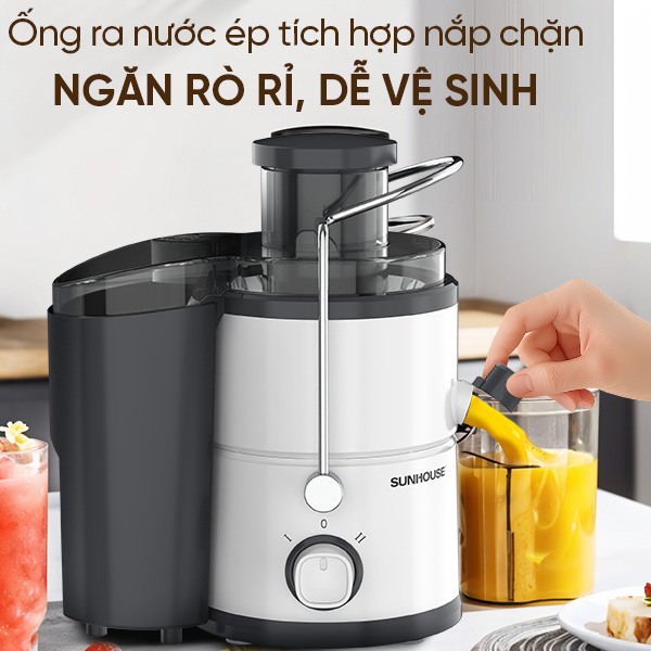 Ống dẫn nước ép thiết kế chắc chắn, dẫn nước ép trực tiếp ra ly, giúp quá trình sử dụng thuận tiện và vệ sinh hơn. Đường kính ống hạn chế tràn đổ ra ngoài khi ép liên tục. Phần đầu ống được trang bị nắp chặn giúp kiểm soát dòng chảy hiệu quả. Khi cần, bạn có thể đóng nắp lại để giữ nước ép trong khoang chứa, sau đó mở ra để rót vào ly một cách gọn gàng, tránh nhỏ giọt ra mặt bàn, giữ không gian bếp luôn sạch sẽ.