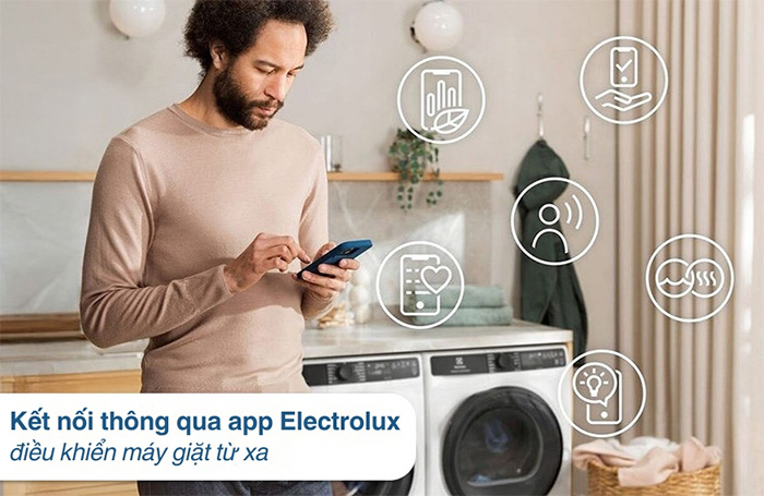 Ngoài bảng điều khiển trực tiếp trên máy, bạn còn có thể điều khiển từ xa thông qua ứng dụng Electrolux, giúp dễ dàng quản lý và cài đặt mọi lúc, mọi nơi.