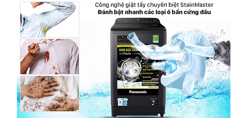 Máy giặt Panasonic được trang bị công nghệ StainMaster độc quyền của hãng với 3 chương trình giặt vết bẩn được thiết lập sẵn gồm: Lưu hương - bùn đất - nước sốt.