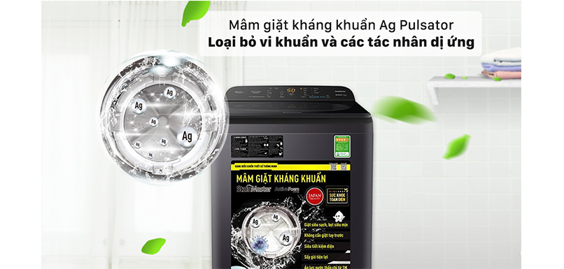 Mâm giặt kháng khuẩn Ag Pulsator trong quá trình vận hành sẽ sản sinh ra các ion bạc Ag loại bỏ các tế bào vi khuẩn và nấm mốc bên trong lồng giặt, từ đó ngăn ngừa sự phát triển của chúng một cách vượt trội, bảo vệ toàn diện sức khỏe cho gia đình.