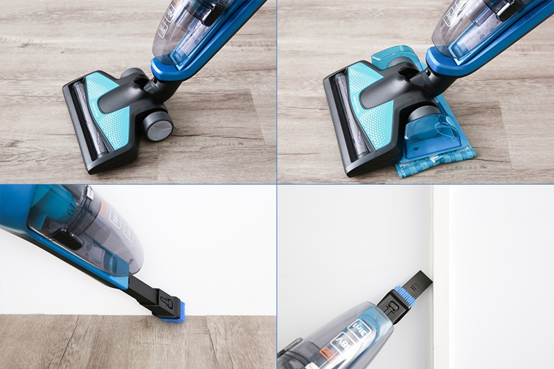 Trang bị đầu hút sàn, bàn chải 2 trong 1, công cụ có kẽ hở, 2 tấm đệm vi sợi cho bạn vừa hút bụi vừa lau sàn dễ dàng