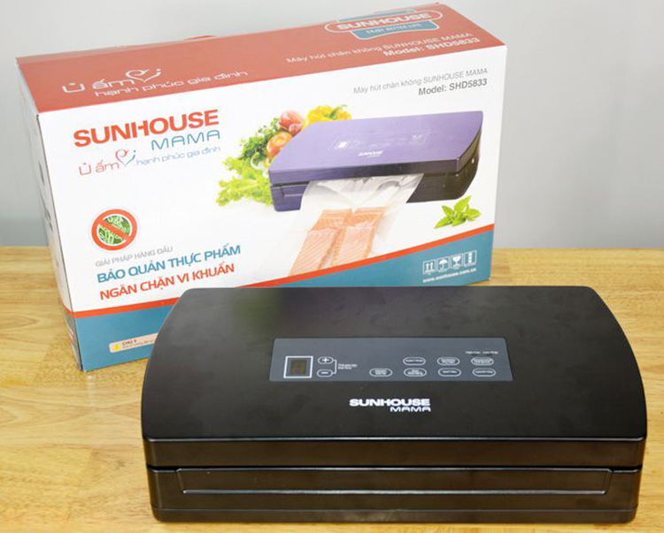 Máy hút chân không Sunhouse Mama SHD5833 có thiết kế nhỏ gọn thích hợp các cửa hàng thực phẩm, nhà hàng, gia đình. Máy có khả năng chống nấm mốc, vi khuẩn xâm nhập thực phẩm, giúp bảo quản lâu hơn, tươi hơn so với khách đóng hộp hoặc màng bọc thực phẩm truyền thống.