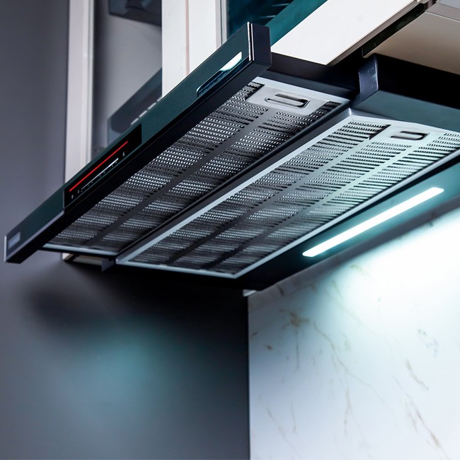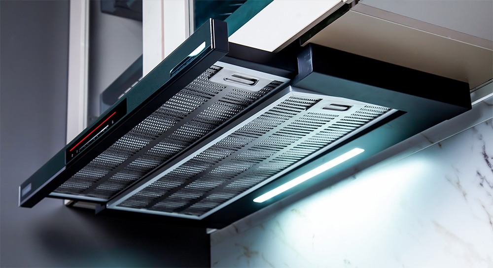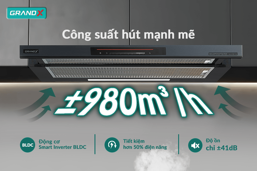 Được trang bị lực hút mạnh lên đến 980m³/giờ giúp loại bỏ nhanh chóng khói, mùi và hơi dầu mỡ trong quá trình nấu nướng.