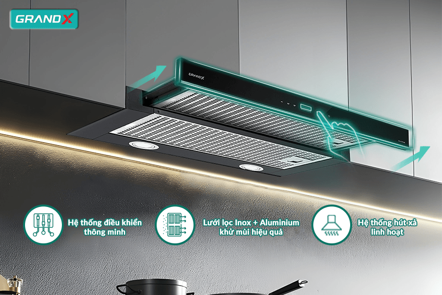 Máy hút mùi GrandX Lite GX H60F58B là dòng hút mùi kéo rút (Telescopic Tornado) hiện đại, thiết kế nhỏ gọn, phù hợp với nhiều không gian bếp. Với kích thước 600x284x206mm, dễ dàng lắp đặt trong mọi không gian tủ bếp, đặc biệt là các căn hộ chung cư hay nhà phố. Bên cạnh đó, máy còn được trang bị đèn LED chiếu sáng giúp cung cấp ánh sáng đầy đủ để hỗ trợ người nội trợ nấu ăn tốt hơn.