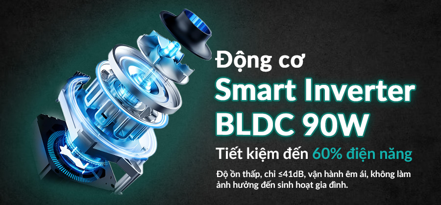 Hệ thống động cơ vận hành êm ái, đảm bảo sự thoải mái cho người dùng. Với độ ồn thấp khoảng 41dB, máy hoạt động mạnh mẽ nhưng không gây ảnh hưởng đến không gian sinh hoạt chung.