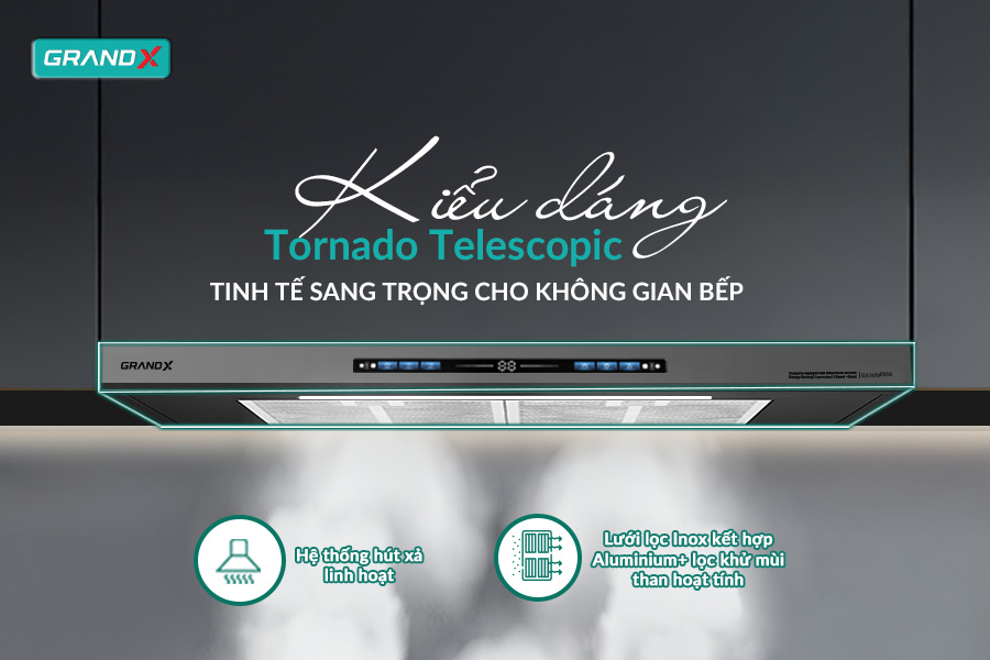 Máy hút mùi GrandX Optima GX H70F85G Với kiểu dáng Tornado Telescopic hiện đại, thiết kế nhỏ gọn, lắp âm tủ tiết kiệm không gian. Với kích thước 700x355x260mm, dễ dàng lắp đặt trong mọi không gian tủ bếp, đặc biệt là các căn hộ chung cư hay nhà phố. Bên cạnh đó, máy còn được trang bị đèn LED chiếu sáng giúp cung cấp ánh sáng đầy đủ để hỗ trợ người nội trợ nấu ăn tốt hơn.
