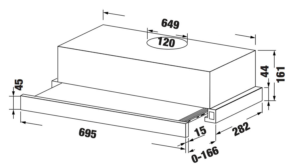 Khi cần hút mùi với công suất lớn, bạn có thể kéo máy rộng ra phía trước để tăng phạm vi hút được nhiều hơn và tốc độ hút nhanh hơn.