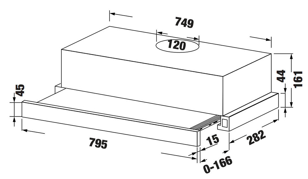 Khi cần hút mùi với công suất lớn, bạn có thể kéo máy rộng ra phía trước để tăng phạm vi hút được nhiều hơn và tốc độ hút nhanh hơn.