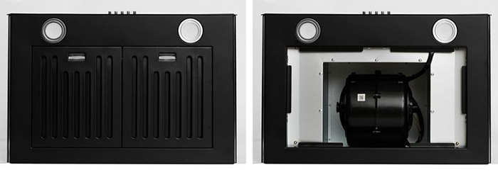 Máy hút mùi được làm bằng thép sơn tĩnh điện màu đen. Chất liệu này không bám bẩn, không bị oxy hóa (gỉ sét) và dễ dàng vệ sinh, luôn sáng bóng như mới, tăng thẩm mỹ cho căn bếp.