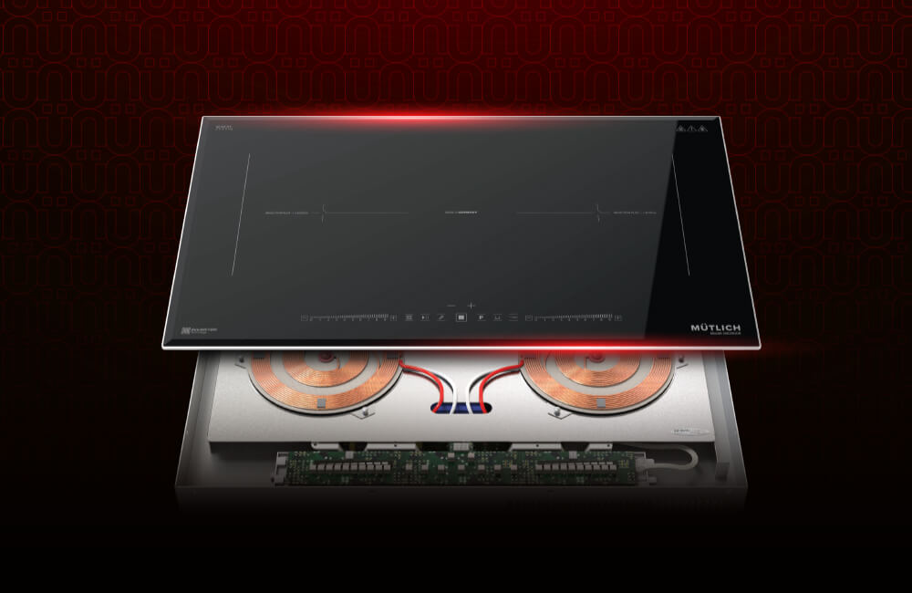 Không giống với các mẫu mã bếp từ có trên thị trường, dòng sản phẩm bếp đôi điện từ Mutlich được trang bị thêm tấm amiang trên mỗi mâm từ của sản phẩm. Việc lắp đặt thêm tấm nhựa amiang này giúp cản nhiệt truyền từ mặt kính xuống bên dưới các linh kiện, giúp bảo vệ và gia tăng tuổi thọ cho các linh kiện.