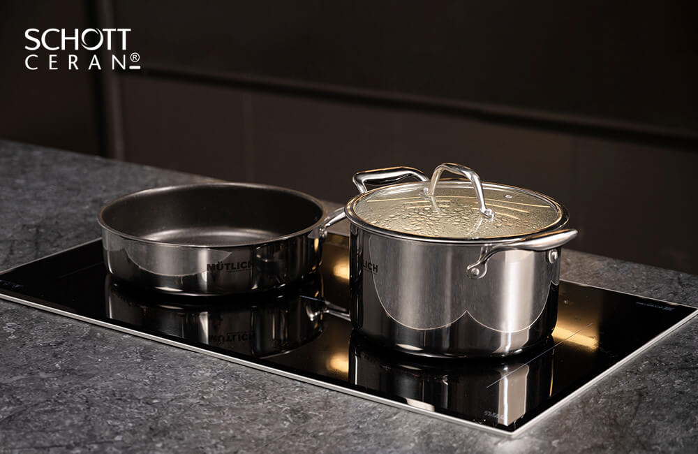 Xuất xứ từ Đức – một quốc gia với sự chặt chẽ trong tiêu chuẩn chất lượng, bếp đôi điện từ Mutlich được trang bị mặt kính Schott Ceran siêu bền với khả năng chống sốc nhiệt cao (tới 700oC). Bên cạnh đó, kính Schott Ceran có khả năng chịu lực lên tới 1000 độ C và chịu nhiệt tới 15kg. Không chỉ thế, mặt kính Schott Ceran có đặc điểm là láng mịn, phẳng giúp dễ dàng trong việc vệ sinh sau khi nấu ăn. Đặc biệt, có khả năng chống chống trầy xước trước những tác động bên ngoài, giúp tăng độ bền cho sản phẩm.