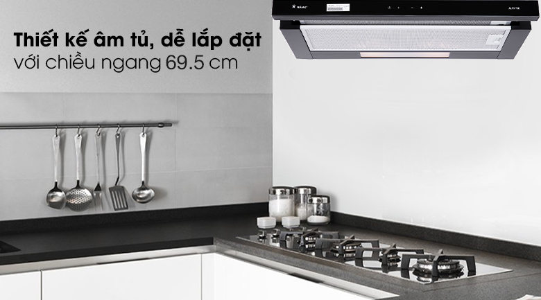 Với thiết kế dạng âm tủ giúp tiết kiệm không gian căn bếp, kích thước chiều ngang gần 70cm thuận tiện lắp đặt cùng với những mẫu bếp điện, bếp ga phổ thông.