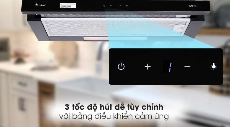 3 tốc độ hút với 2 quạt hút mạnh mẽ giúp loại bỏ mùi khó chịu sau khi nấu ăn một cách nhanh chóng. Các chức năng của máy hút mùi ALP9-700 dễ dàng thao tác điều chỉnh với hệ thống điều khiển cảm ứng siêu nhạy.