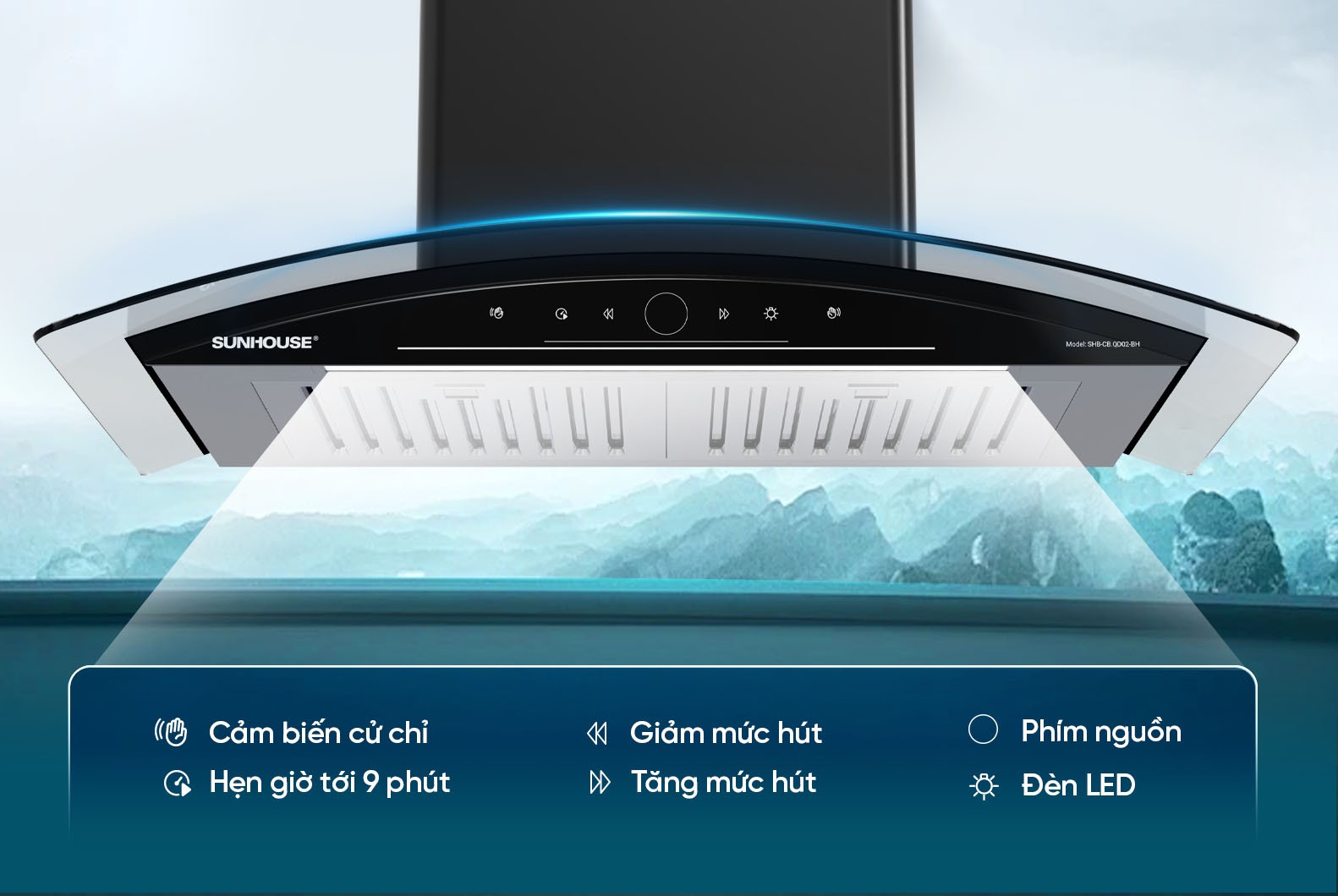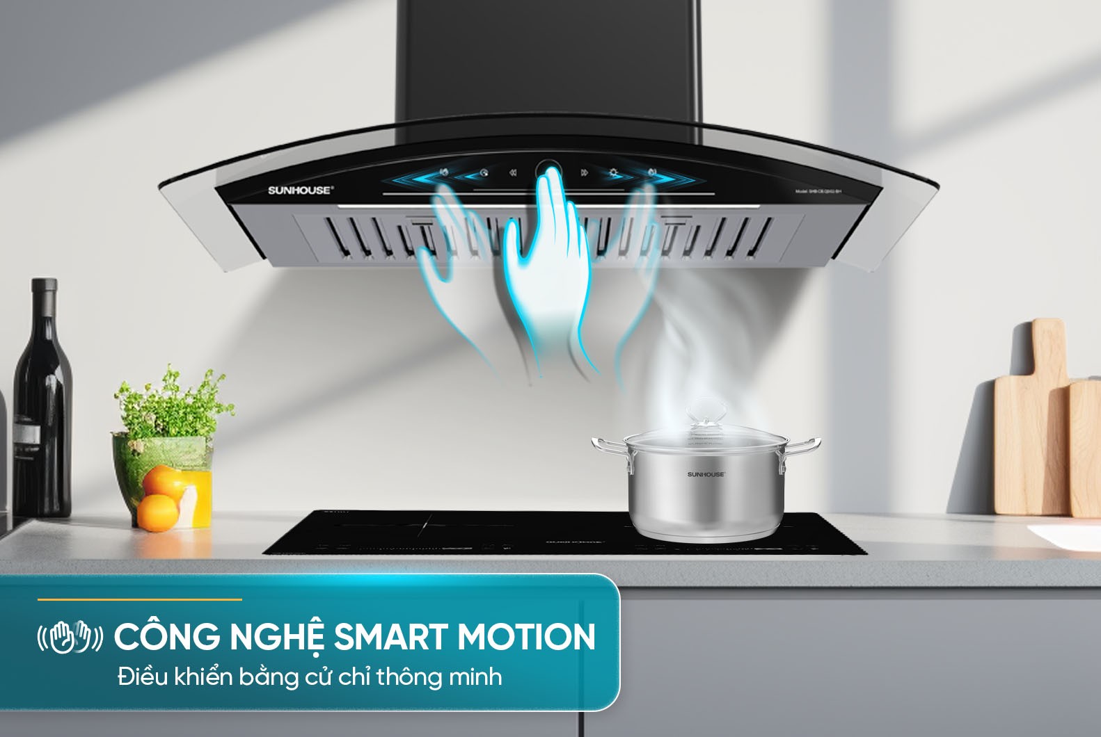 Ngoài bảng điều khiển cảm ứng, máy hút mùi này còn trang bị cảm biến không chạm với công nghệ Smart Motion, bạn có thể khởi động nhanh chóng bằng cách vẫy tay nhẹ nhàng, không sợ tay dính dầu mỡ làm vấy bẩn bề mặt thiết bị khi sử dụng.