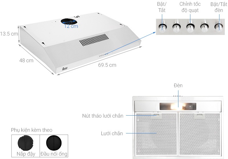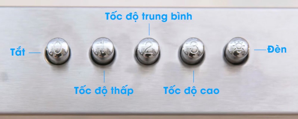 Hệ thống nút nhấn cùng kí hiệu giúp bạn dễ dàng nhận biết và lựa chọn tốc độ hút phù hợp. Bên cạnh đó, sản phẩm được thiết kế có đèn chiếu sáng giúp hỗ trợ quá trình nấu ăn được dễ dàng hơn. Chỉ cần nhấn nút đèn trên bảng điều khiển là đèn sẽ được bật lên ngay.