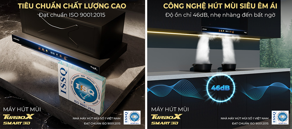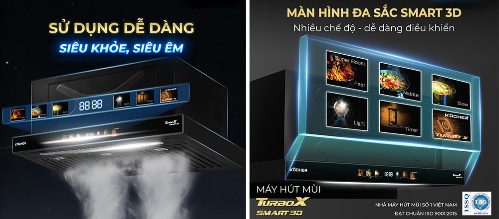 Chất liệu hợp kim cao cấp cùng quy trình sản xuất đạt tiêu chuẩn ISO 9001:2015 không chỉ đảm bảo độ bền vượt trội mà còn tôn lên tính thẩm mỹ cho không gian nội thất. Máy dễ dàng lắp đặt âm tủ nhưng vẫn đảm bảo hiệu quả hút tối ưu nhờ khoang hút gió kích thước lớn gấp 3 lần, giúp tăng tốc độ hút và loại bỏ khói dầu nhanh chóng.