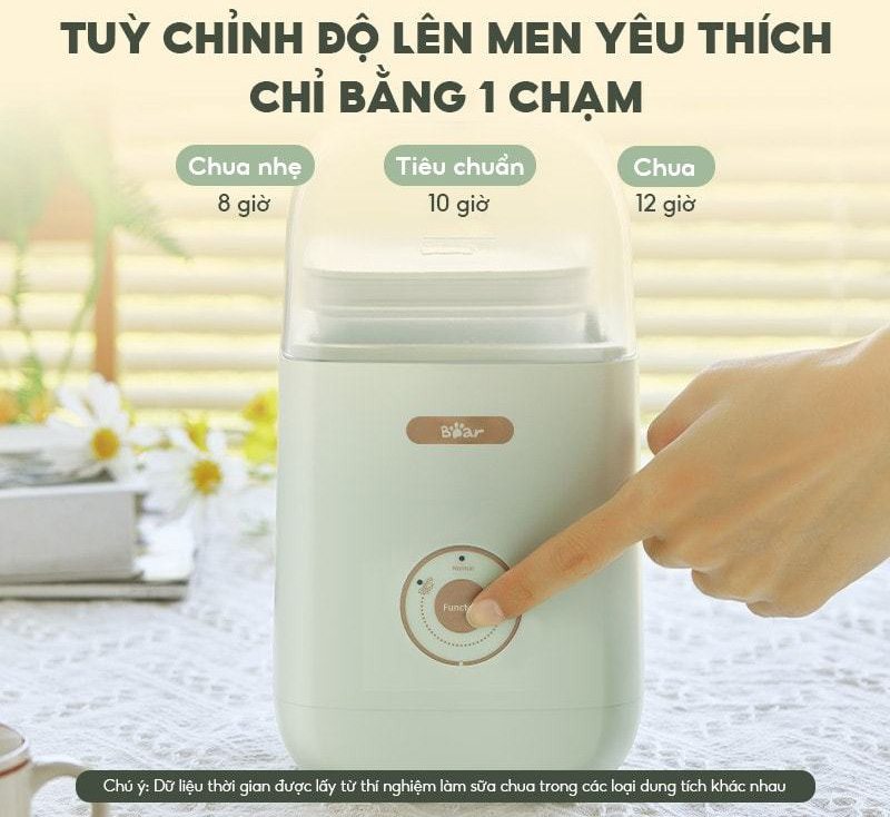| Chức năng lên men | Slightly sour ủ 8 tiếng Normal ủ 10 tiếng Sour ủ 12 tiếng |