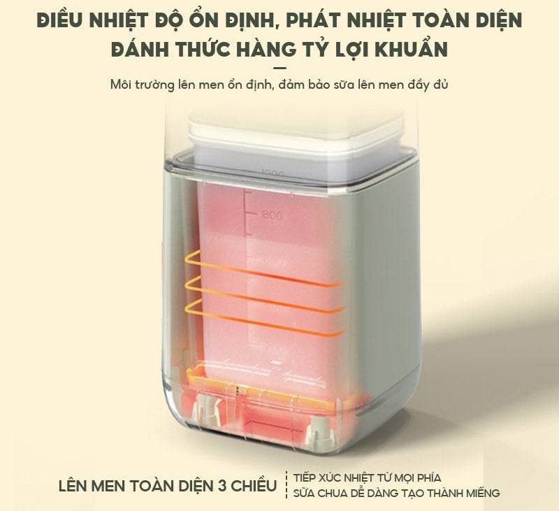 Máy làm sữa chua Bear SB-SC12C có hệ thống tỏa nhiệt đồng đều, điều chỉnh nhiệt độ ổn định. Từ đó tạo nên môi trường lên men toàn diện từ 3 chiều, nhiệt tỏa đều 360 độ. Việc duy trì ổn định nhiệt tạo môi trường lên men ổn định, đánh thức hàng tỷ lợi khuẩn, dễ dàng tạo thành miếng khi thành phẩm.