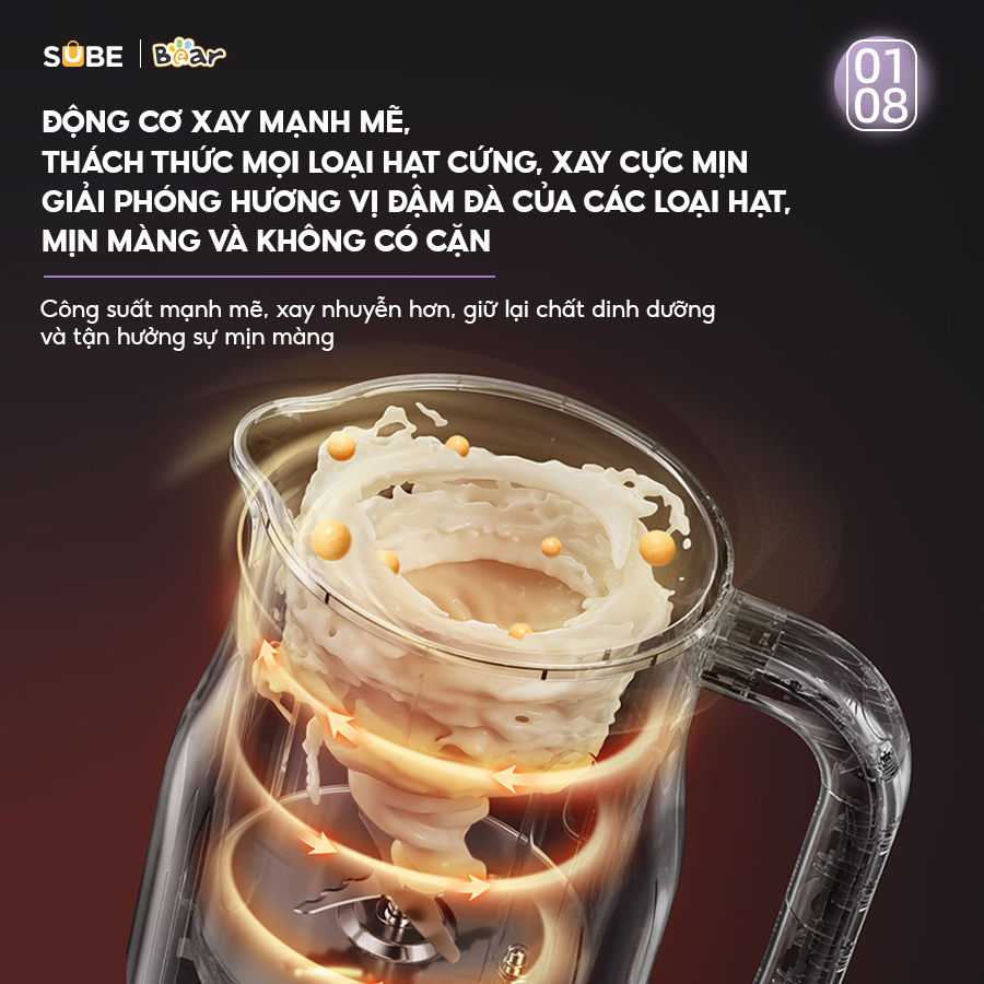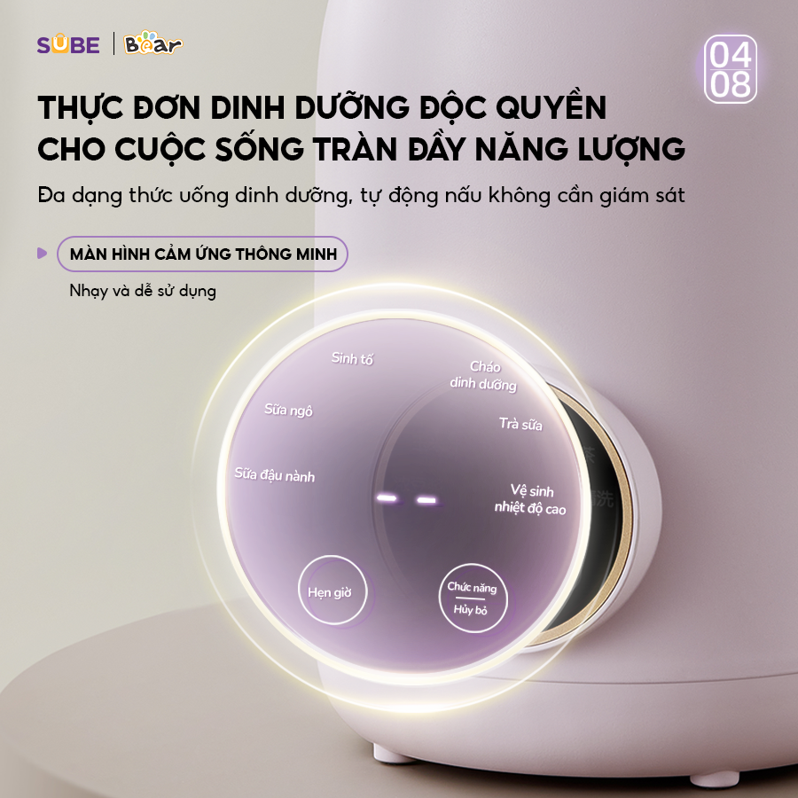 | Chức năng nấu | Nấu sữa đậu nành Nấu sữa bắp/ngô Nấu cháo dinh dưỡng Nấu trà sữa Làm sinh tố |