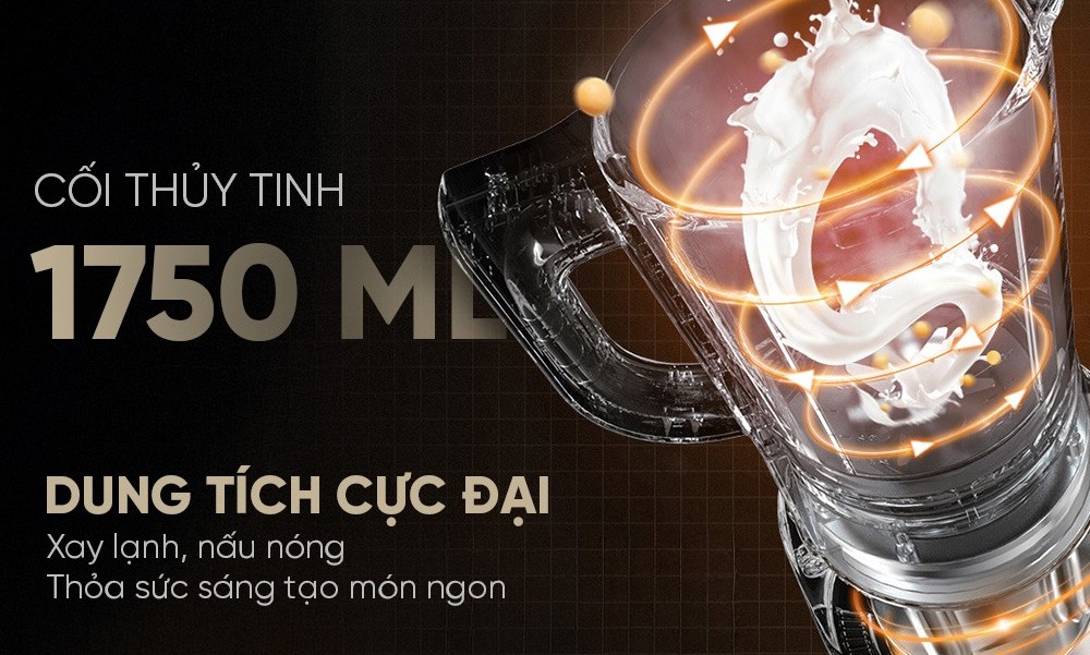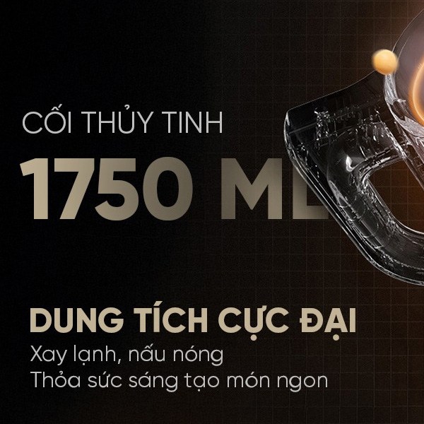Cối lớn với dung tích 1.75 lít bằng thủy tinh trong suốt, có thể dễ dàng quan sát khi đang chế biến. Chất liệu thủy tinh có khả năng chịu nhiệt tốt nên bạn có thể hoàn toàn yên tâm khi xay các nguyên liệu lạnh hay nấu ở nhiệt độ cao và rất dễ dàng vệ sinh.