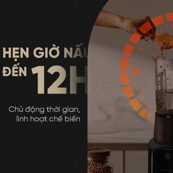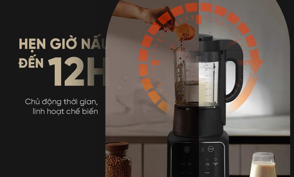 Chế độ hẹn giờ nấu tới 12 tiếng, bạn chỉ cần chuẩn bị nguyên liệu từ tối hôm trước sau đó cho vào máy và hẹn giờ, sáng hôm sau thức dậy đã có sẵn một ly sữa ấm nóng, thơm ngon cho một ngày mới tốt hơn.