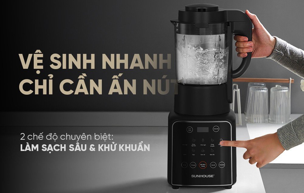 Làm sạch cối trong tích tắc với chức năng vệ sinh, máy có 2 chế độ chuyên biệt gồm làm sạch sâu và khử khuẩn giúp làm sạch toàn bộ lưỡi dao và bên trong lòng cối, hạn chế tối đa cặn bám và vi khuẩn, mang lại sự yên tâm tuyệt đối khi sử dụng hàng ngày.