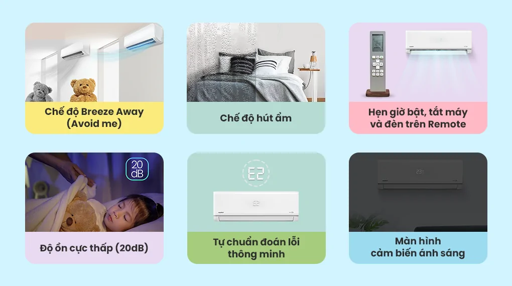 ♦ Điều hòa thông minh Comfee cho phép chủ động điều chỉnh hướng gió để hơi lạnh không thổi trực tiếp vào người. Bảo vệ sức khỏe gia đình vào ban đêm, hạn chế hạ thân nhiệt, dễ bị cảm lạnh.