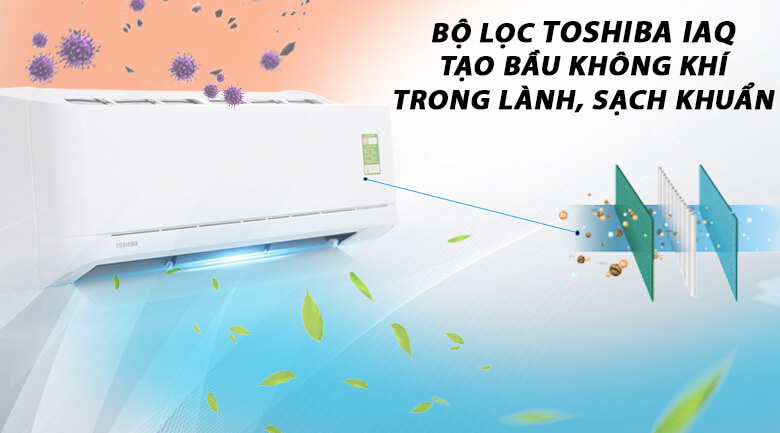 Công nghệ Toshiba IAQ với hệ thống khử mùi diệt khuẩn gồm leuconostoc enzym, tinh thể bạc và màng lọc bụi PM 2.5 có khả năng ngăn chặn sự phát triển của vi khuẩn và virus giúp không khí luôn trong lành, tươi mát, nâng sức khoẻ của gia đình bạn lên tầm cao mới.
