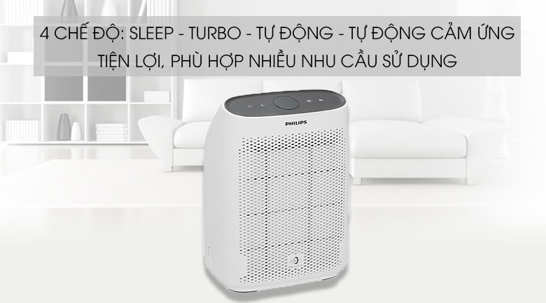 Máy lọc không khí Philips có 3 mức độ quạt và 4 chế độ: Tự động - Tự động cảm ứng - Turbo - Sleep tiện lợi cho nhiều nhu cầu sử dụng khác nhau của người sử dụng