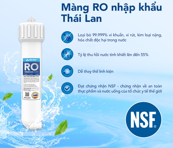 - Chức năng: Loại bỏ 99,99% vi khuẩn, virus, kim loại nặng, hóa chất có trong nguồn nước.