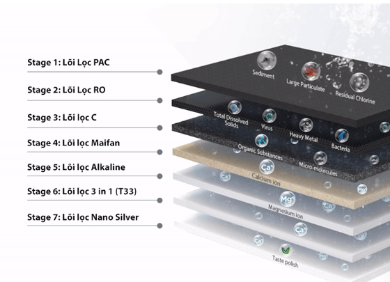 | Quy trình lọc | Thông qua 7 giai đoạn |
