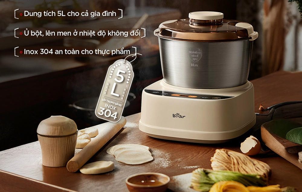 Máy nhào bột Bear SM-5H50Z68 kiểu dáng cải tiến hiện đại, tích hợp chức năng nhào bột và ủ bột, góp phần tạo nên sự thành công cho các món bánh ngọt, mì tươi, sủi cảo, bánh bao,...