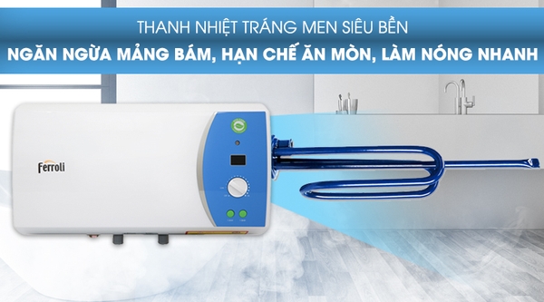 Lớp men Titanium này được phủ kín trên bề mặt lòng bình của bình nước nóng Ferroli VERDI 20L AE thành một thể thống nhất có tác dụng chống rò rỉ nước, nâng cao chất lượng, độ bền cho bình chứa.
