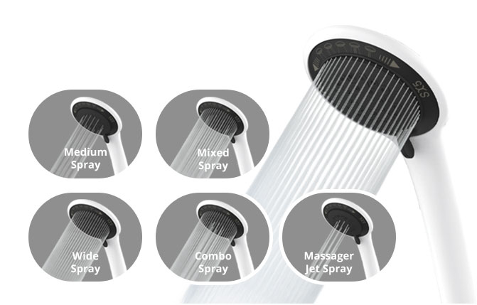 Tận hưởng cảm giác thoải mái dưới dòng nước sạch cùng vòi sen cao cấp vói 5 chế độ phun.