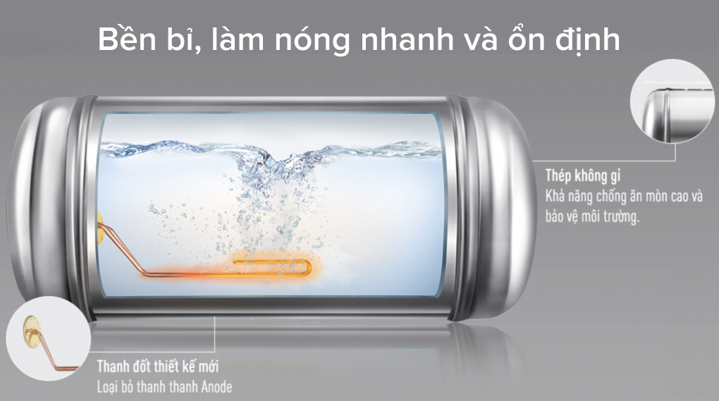 Thanh nhiệt bằng đồng cho khả năng làm nóng nước nhanh, đều nhiệt, sử dụng bền bỉ theo thời gian.