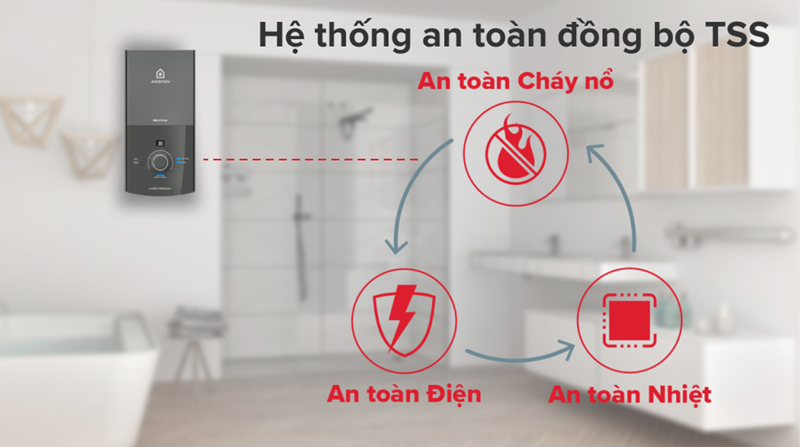 | Chức năng an toàn | Bộ ổn định nhiệt kép Công nghệ Residual Heat® Cảm biến lưu lượng nước Cầu dao chống rò điện ELCB Hệ thống an toàn đồng bộ TSS Hệ thống Safety Check Vỏ bình nung làm từ vật liệu chống cháy Vỏ chống thấm nước IP25 |