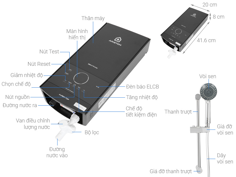 Máy nước nóng Aures Top 4.5P là sản phẩm làm nóng trực tiếp có bơm trợ lực cao cấp của tập đoàn Ariston đạt giải thưởng thiết kế của năm 2022 do tạp chí VNexpress trao tặng.