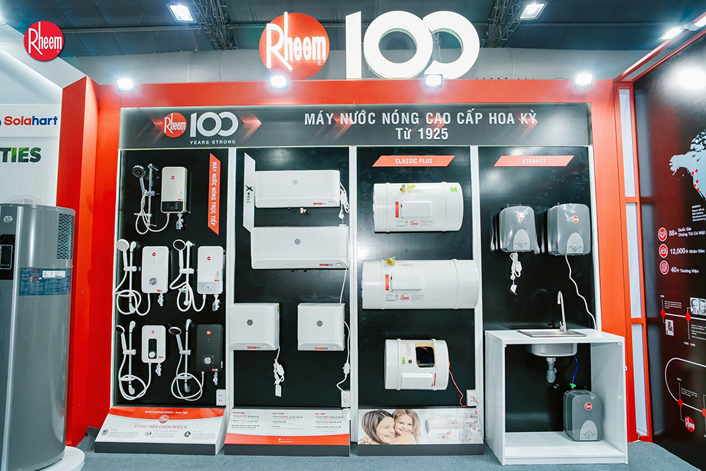 Thương hiệu Rheem đã gia nhập thị trường từ năm 1925, trải qua gần 100 năm hoạt động kinh doanh, Rheem từ một công ty tại California (Hoa Kỳ) đã vươn tầm ra thế giới với hơn 50 thương hiệu trên toàn thế giới có mặt ở hơn 80 quốc gia.