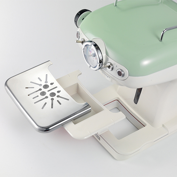 Phần đế giữ cốc của máy được làm bằng thép không gỉ, mang lại sự sang trọng và đảm bảo bền bỉ với thời gian. Khay hứng nước cũng được thiết kế dễ dàng tháo lắp để việc vệ sinh máy pha cà phê nhanh chóng, đơn giản, tiện lợi hơn.