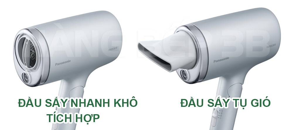 Trang bị 2 đầu sấy nhanh khô tích hợp và đầu sấy tụ gió.