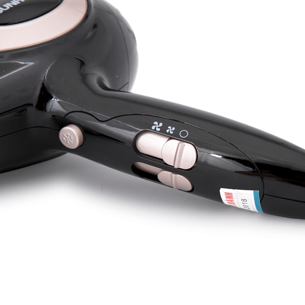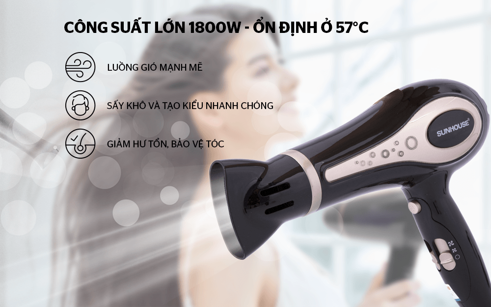 Công suất 1800W rút ngắn thời gian sấy với luồng gió mạnh mẽ, mái tóc sẽ khô nhanh trong tích tắc, vừa tiết kiệm thời gian, vừa tiết kiệm điện năng. Bạn có thể tùy chỉnh chế độ sấy khô hoặc sấy mát bảo vệ tóc bằng cách trượt/gạt nhẹ công tắc trên tay cầm, vô cùng tiện dụng và dễ dàng.