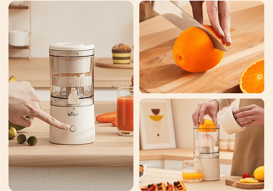 Máy vắt cam Bear ZZJ-F45A5 có thể vắt các loại quả có kết cấu múi xơ như cam, quýt, bưởi, nho, chanh dây và các loại quả khác như táo, lê, kiwi,...