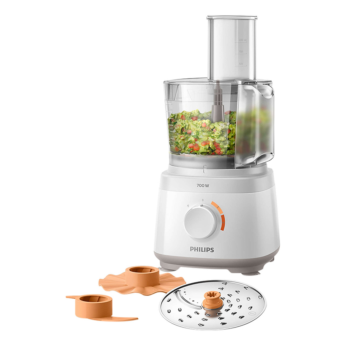 HR7310/011 là máy chế biến thức ăn đa năng với 16 chức năng như đánh trứng, trộn thực phẩm, nhào bột, xay thịt, làm mỏng và cắt sợi mì, xay ép trái cây.