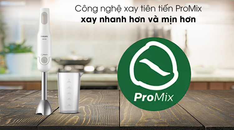 Hợp tác phát triển cùng đại học Stuttgart, hãng Philips tạo ra công nghệ ProMix với đầu xay hình dáng tam giác tạo luồng thức ăn khi xay tối ưu giúp đạt hiệu suất xay cao, xay nguyên liệu nhanh sánh, đặc.