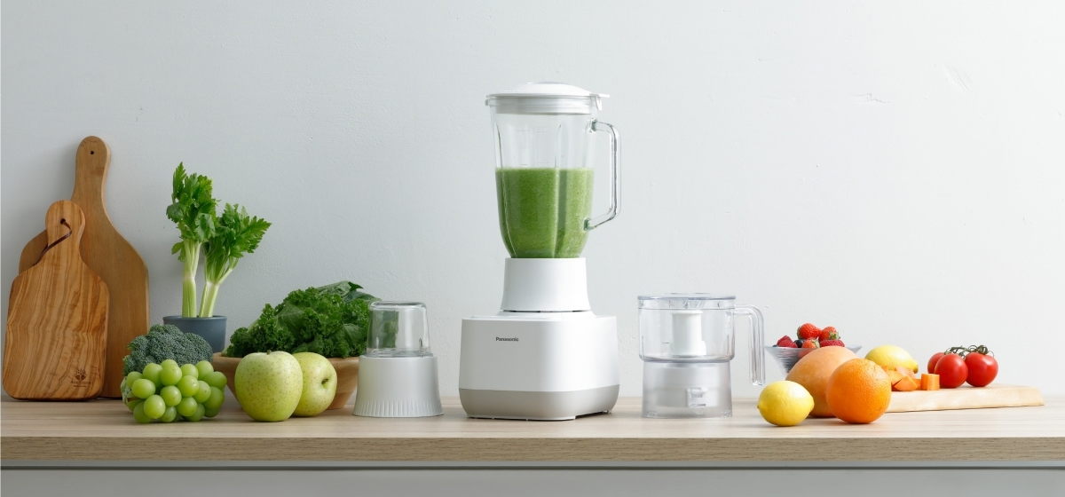 Máy xay sinh tố Panasonic MX-MG53C1CRA gồm 3 cối xay chất liệu cao cấp, chịu lực tốt, dễ vệ sinh.